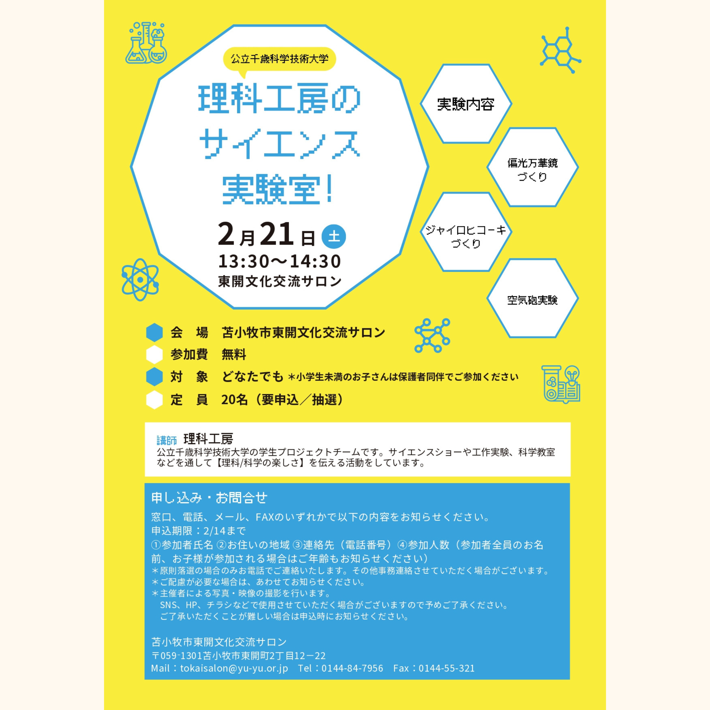 【2月のイベント】公立千歳科学技術大学理科工房のサイエンス実験室!