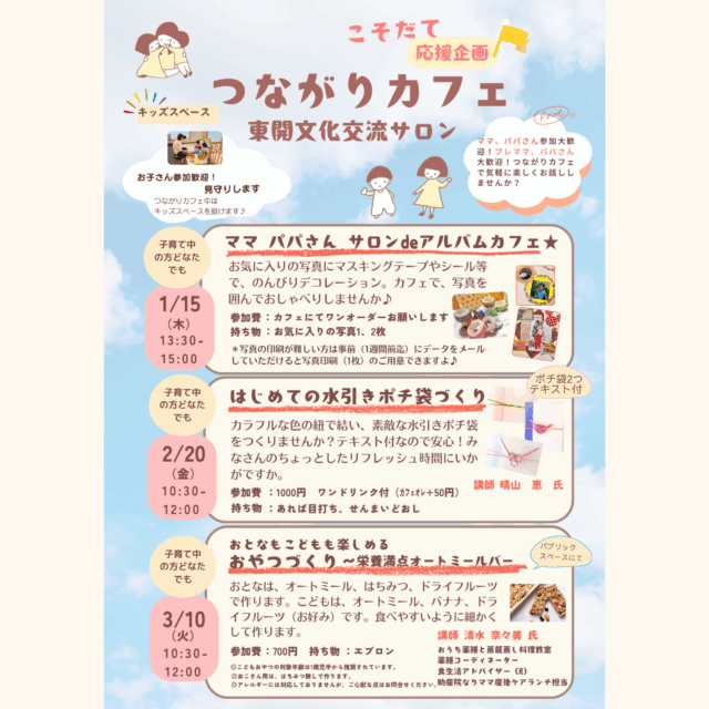 終了【1月のイベント】つながりカフェ~ママパパさんサロンdeアルバムカフェ★