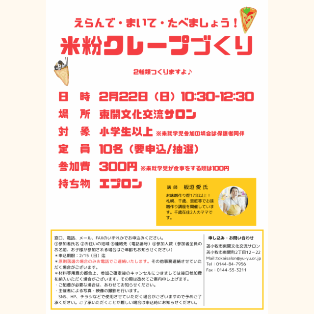 【2月のイベント】えらんで・まいて・たべましょう!米粉クレープづくり