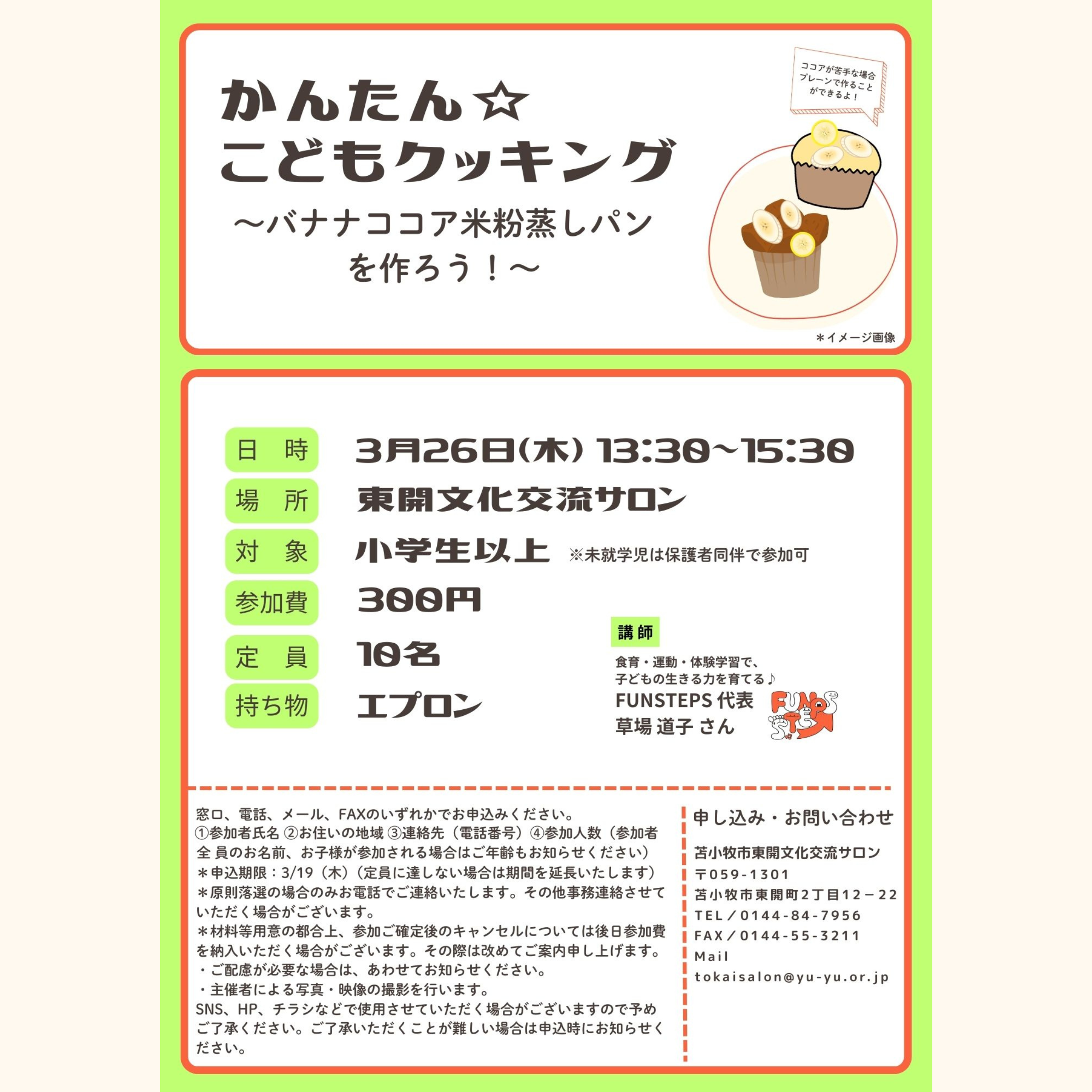 【3月のイベント】かんたん☆こどもクッキング~バナナココア蒸しパンを作ろう!~
