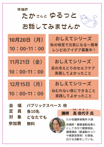 【10月のイベント】保健師たかさんのゆるっとお話してみませんか~秋の味覚で元気になる!