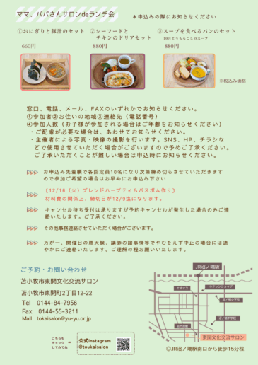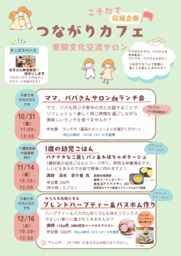 【10月のイベント】つながりカフェ~ママ、パパさんサロンdeランチ会~