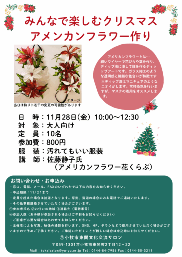 【11月のイベント】みんなで楽しむクリスマスアメリカンフラワー作り