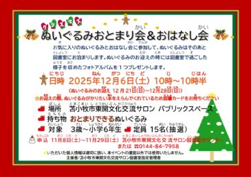 【12月のイベント】ぬいぐるみおとまり会&おはなし会