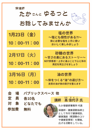 【1月のイベント】保健師たかさんのゆるっとお話してみませんか~