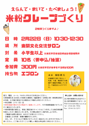 【2月のイベント】えらんで・まいて・たべましょう!米粉クレープづくり