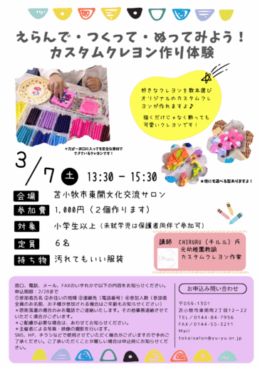 【3月のイベント】えらんで・つくって・ぬってみよう!カスタムクレヨン作り体験