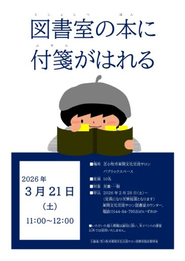 本を読んで、思ったこと、気が付いたことなどを付箋に書きます!みんなで読む本なので、どんなことを感じたのか共有できたら、きっと楽しいはず!読んだことのない本でも、絵本でも、料理や手芸の本でも、付箋をつける本はどの本でも大丈夫です。本を読んで付箋をどんどん貼りましょう♪お一人でも、親子でも、どなたでもご参加いただけます。お気軽にご参加ください♪