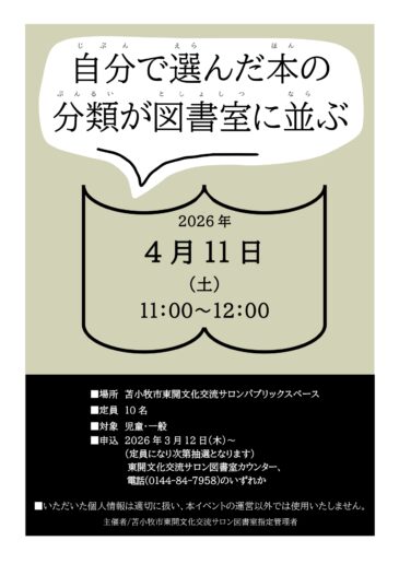 【4月のイベント】自分で選んだ本の分類が図書室に並ぶ