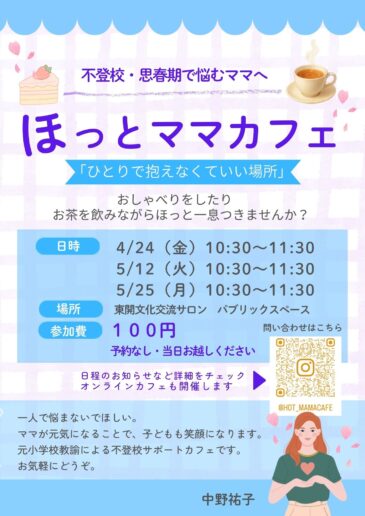 不登校支援の為の座談会 『ほっとママカフェ』